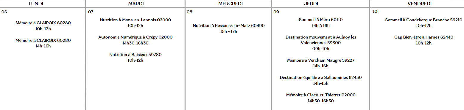 **Le calendrier complet de janvier sera disponible ร partir du 6 janvier 2025 !