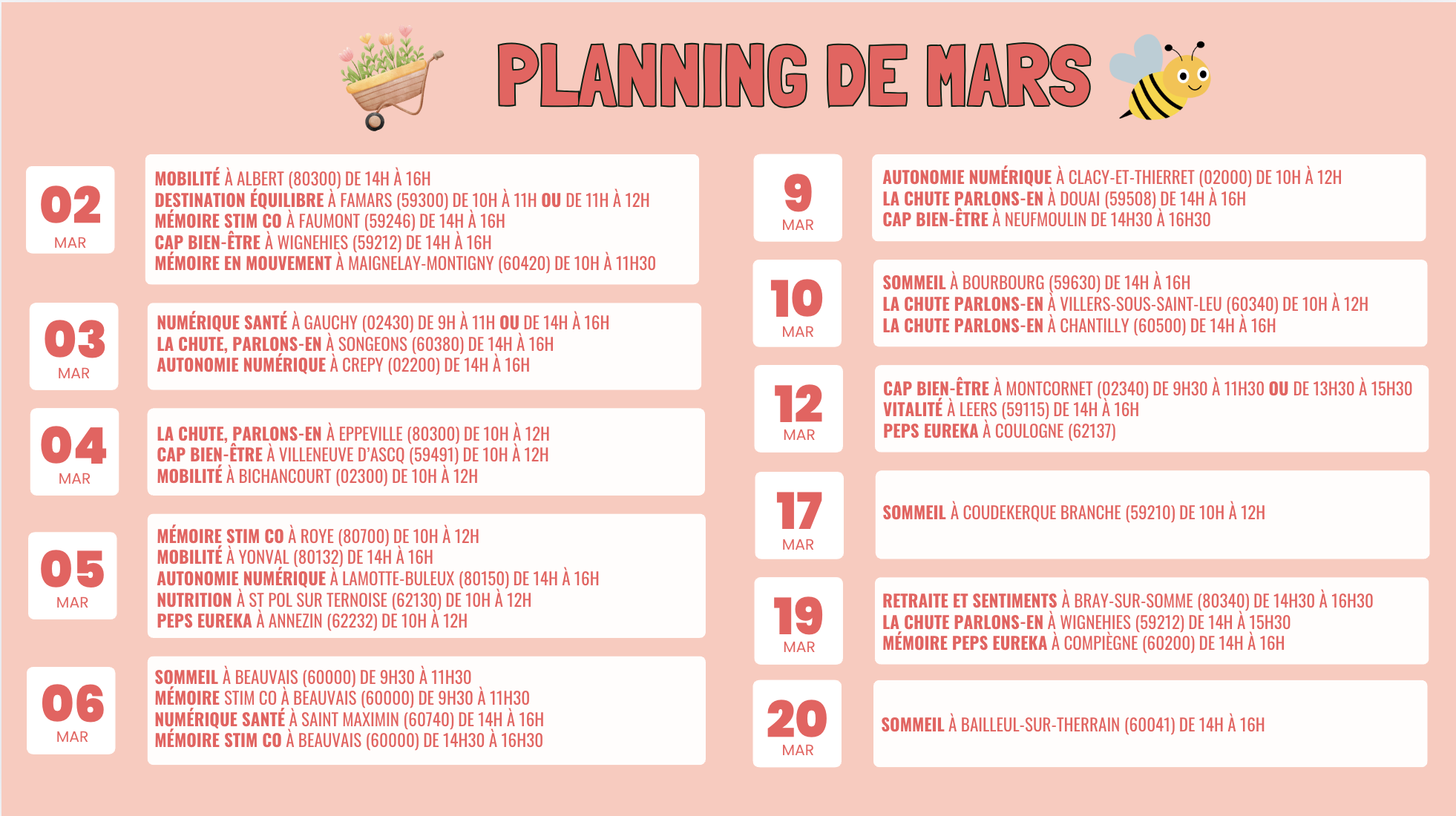 MARS 2026 AVRIL 2026 Cliquez sur l’image pour l’agrandir. Cliquez ici pour vous inscrire à l’une de nos actions !